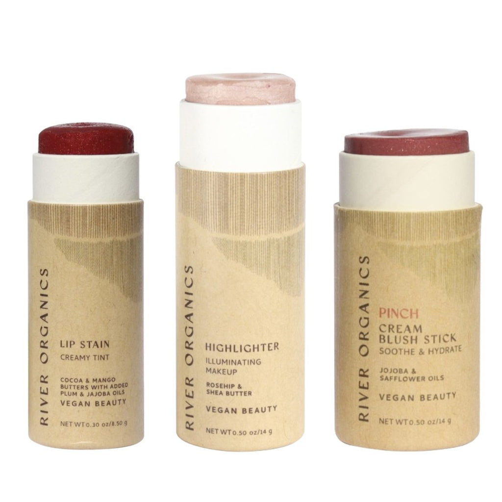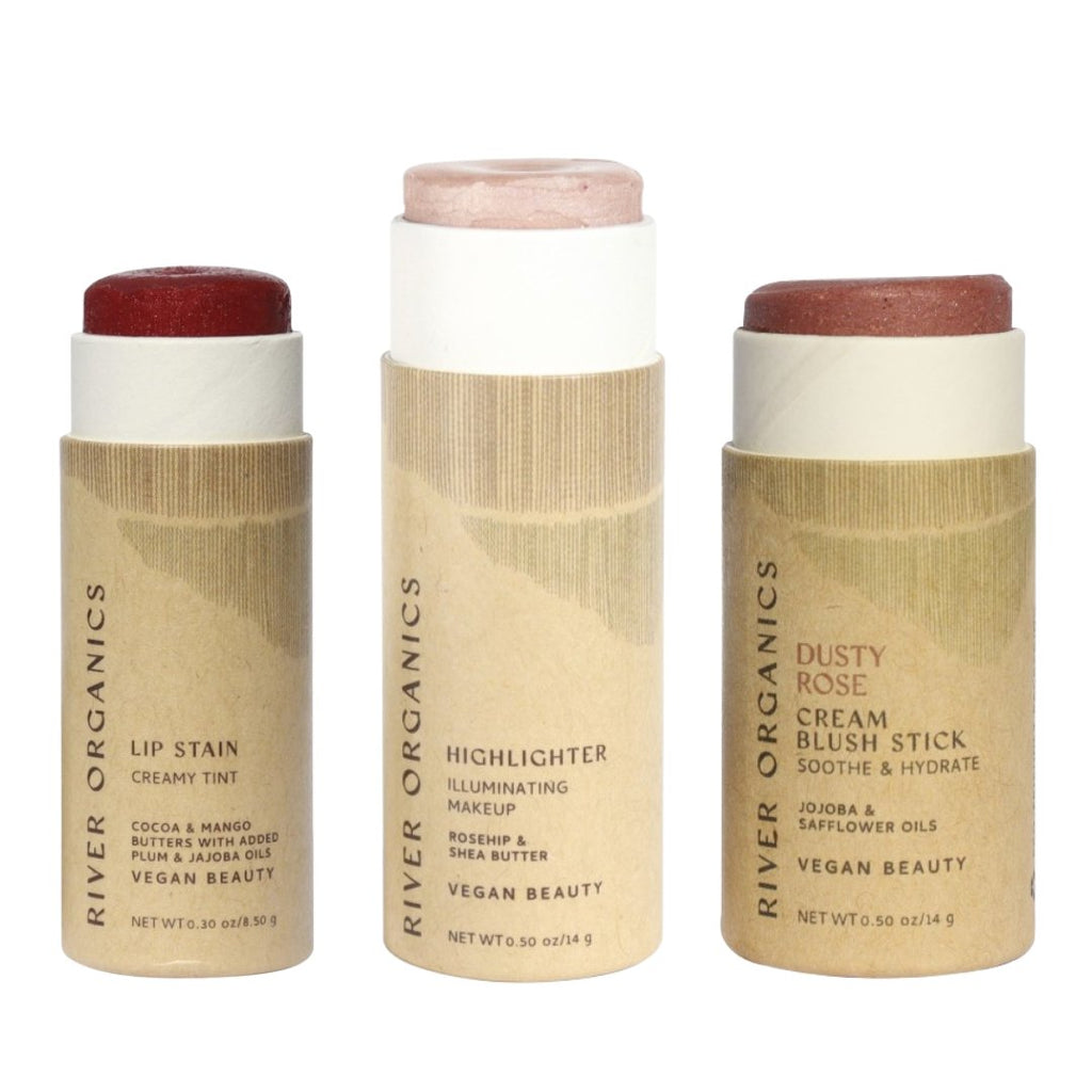 Choose 1 ultra-hydrating lip balm that give lips a naturally moisturized tinted look. All of the ingredients are plant based and selected for their protective and hydrating qualities.