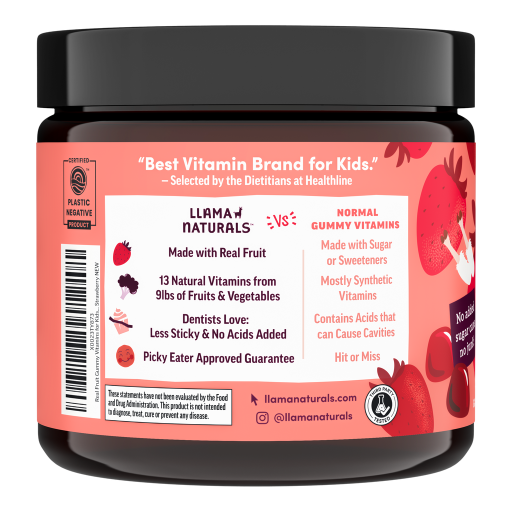 Organic Apples (juice, puree), Organic Strawberries (puree), Fruit & Vegetable Based Vitamin Blend (Spinach, Broccoli, Carrots, Sweet Potatoes, Oranges, Apples, Strawberries, Sunflower Seeds, Shiitake Mushrooms, Maitake Mushrooms), Organic Rice Flour (coating), Organic Lemon Juice, Fruit Pectin, Organic Black Carrot Juice, Organic Flavor.