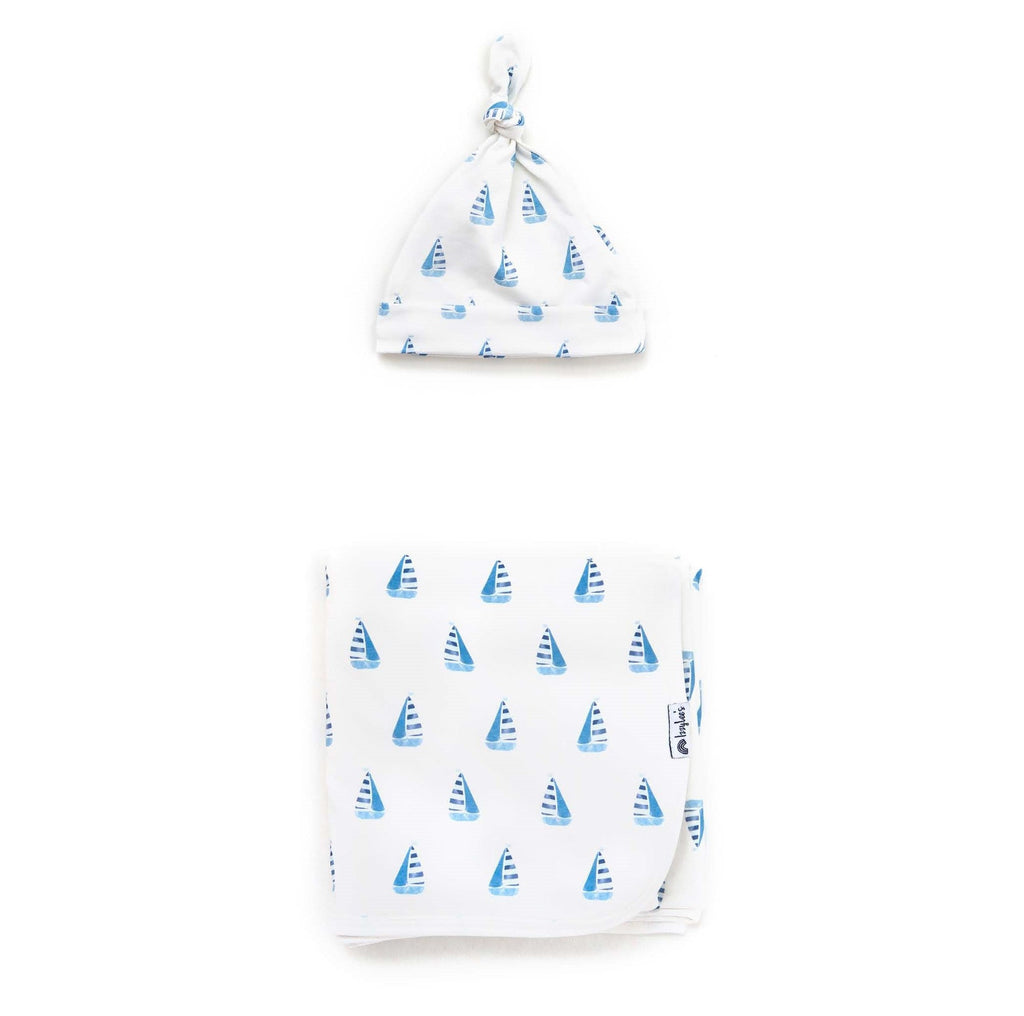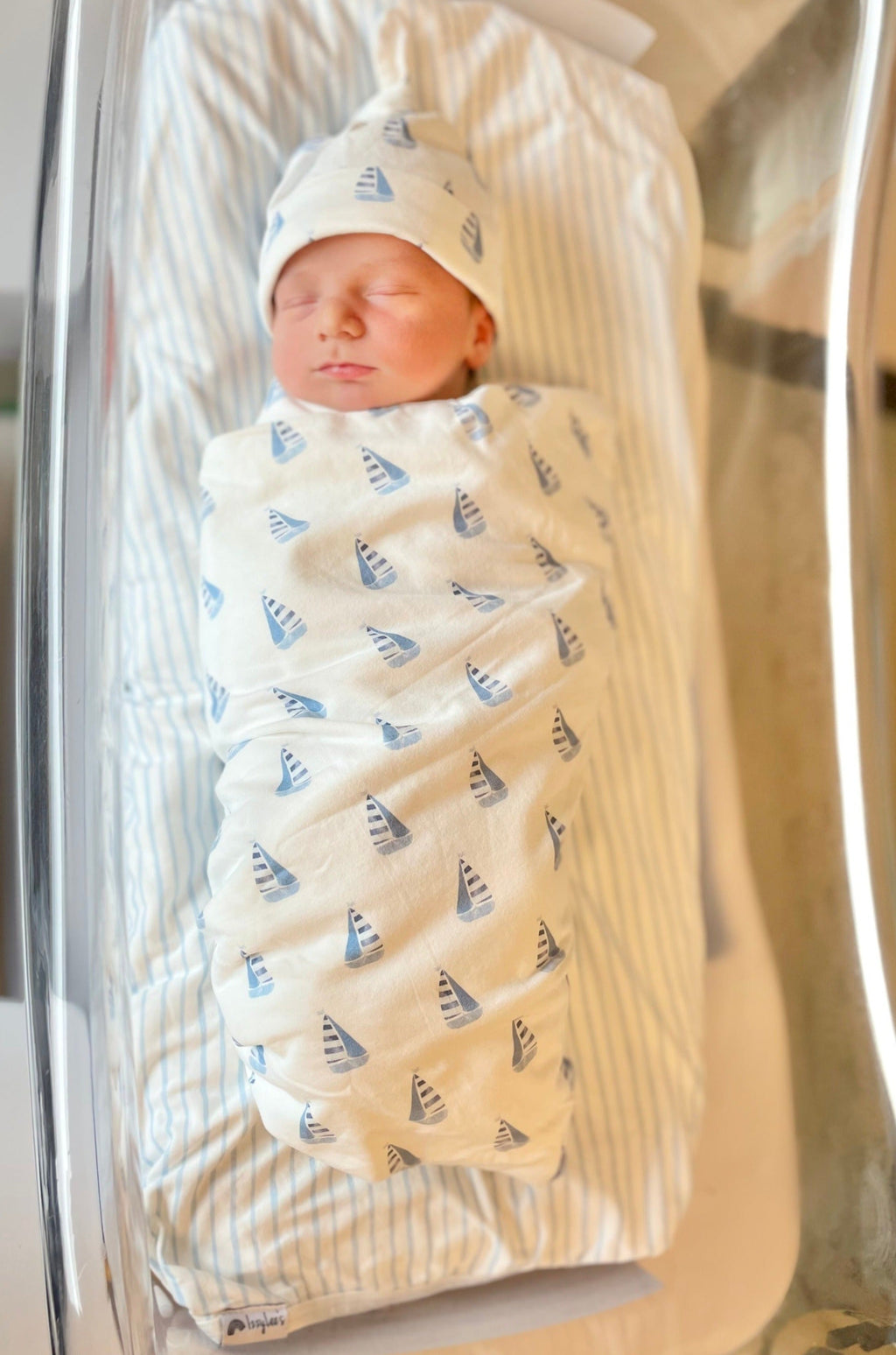 Create timeless newborn photos with this organic blanket and hat mini bundle in classic Cape Cod Sails print. Crafted from soft GOTS-certified organic cotton, the fabric is gentle on baby’s delicate skin and offers just the right amount of stretch for lasting comfort.