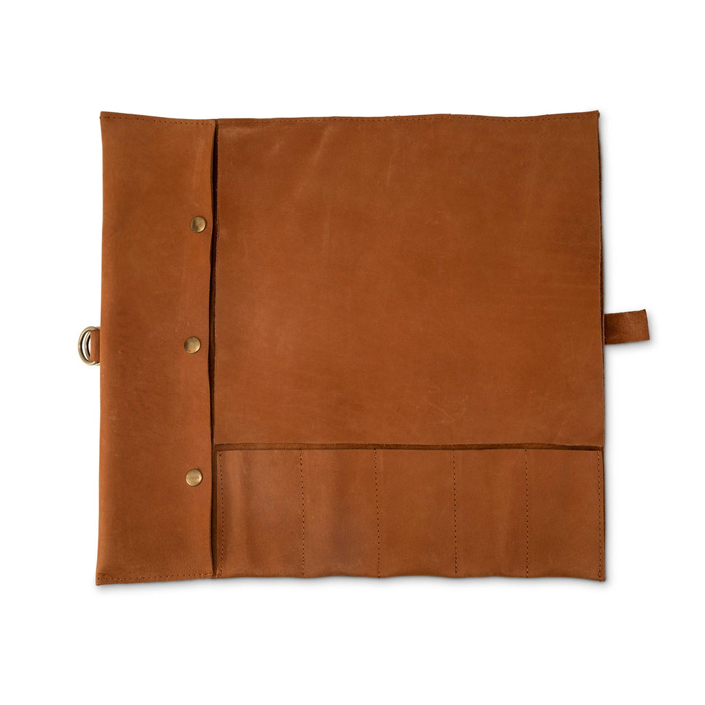 The ultimate barbecue knife set! Includes the 4.5" Utility Knife, 6" Boning Knife, 8" Chef Knife, 10" Slicer, and 10" Scimitar with a sturdy leather knife roll.