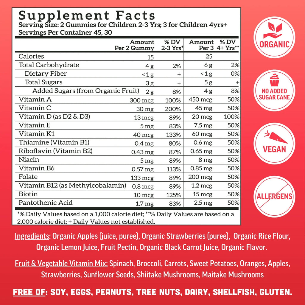 Nutrient-rich whole fruit gummies with 13 natural vitamins and no added sugar, crafted to support kids’ daily nutrition.